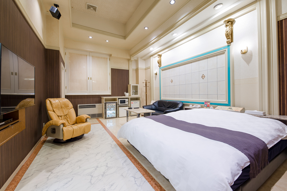 ホテルジャスミンは、グループ初のガレージインホテル。リゾートをテーマにした客室には、全室にキングサイズのベッド、大型テレビ、ウォーターサーバーを完備。さらに、お部屋によっては「カラオケ」「マッサージチェア」をご用意。人目を気にせずに、ゆったりとしたお2人だけの時間をお過ごしください。