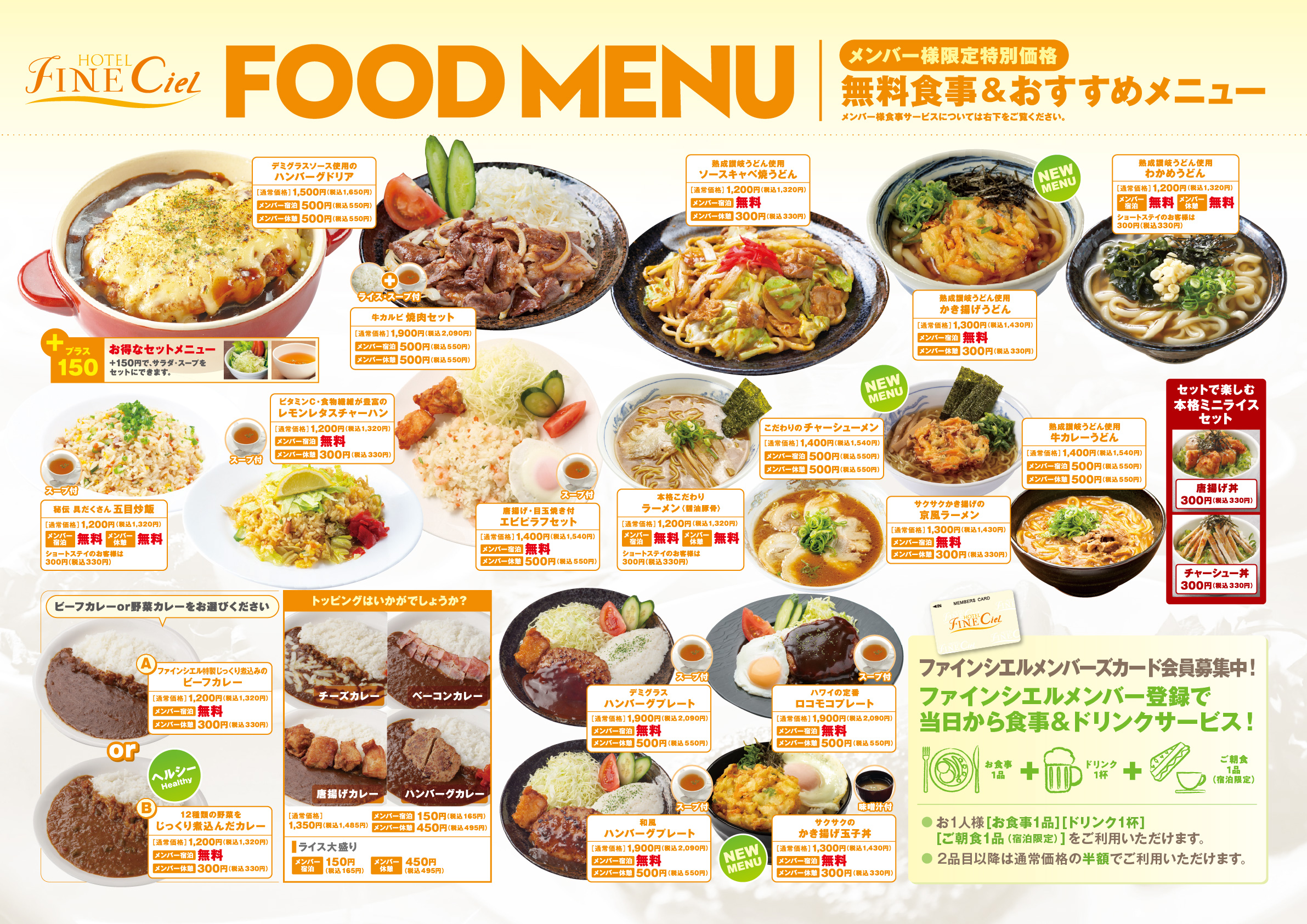 ご休憩・サービスタイム・ご宿泊関係なく、メンバー様は「無料食事・ウェルカムドリンク」サービスをご利用いただけます。